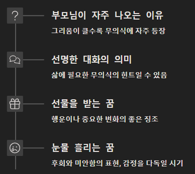 가장 흔하게 나타나는 장면은 부모님, 조부모, 혹은 가까운 가족이 꿈에 등장하는 경우예요. 이는 단순한 그리움을 넘어서 정서적 의지, 미완의 감정, 혹은 내면의 위로가 필요하다는 신호일 수 있어요.