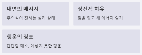 👉 정신적인 만족감이나 긍정적인 변화가 예상됩니다. 문제가 해결된 후 기분 좋은 결과를 맞이하게 될 징조입니다.