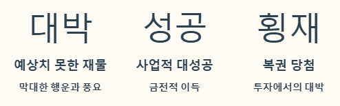 이는 사업적인 대성공, 복권 당첨과 같은 횡재수, 혹은 투자에서의 대박 등 주체할 수 없을 만큼의 금전적 이득을 얻게 될 징조입니다. 당신의 삶에 넘쳐나는 풍요로움이 가득해질 것입니다.