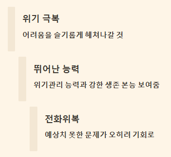 | 내가 죽음을 피하는 꿈 | 위기 극복, 문제 해결, 전화위복. | 길몽 |