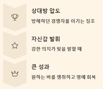 직장에서의 경쟁에서 우위를 점하거나, 사업상 라이벌을 물리치는 등 당신이 원하는 바를 쟁취하고 큰 성과를 얻게 될 것입니다. 오랜 갈등이 해결되거나, 당신의 권리나 명예를 되찾게 될 수도 있습니다.