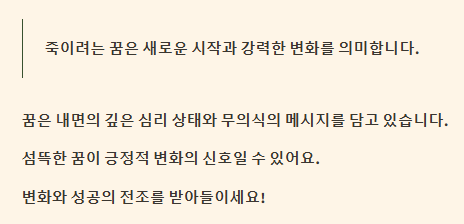 | 꿈 상황 | 해석 내용 | 길몽 or 흉몽 |