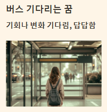 | 버스를 기다리는 꿈 | 새로운 기회 대기, 변화에 대한 기대/불안. | 혼재 |