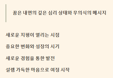 | 꿈 상황 | 해석 내용 | 길몽 or 흉몽 |