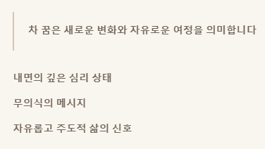 차 꿈은 새로운 변화와 자유로운 여정을 의미합니다