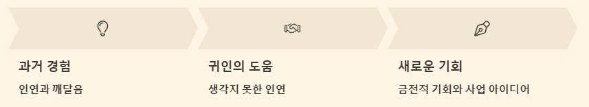 오래된 인연이나 과거의 경험이 현재의 당신에게 금전적인 기회나 새로운 사업 아이디어로 이어질 수 있습니다. 당신의 주변 사람들과의 관계를 소중히 여기고, 그들에게서 얻은 교훈을 잘 활용한다면 큰 재물을 얻을 수 있을 것입니다.