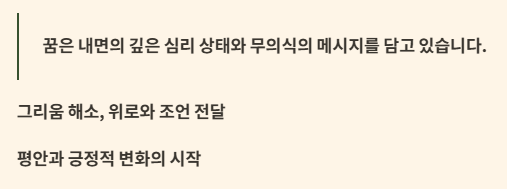 꿈은 우리 내면의 깊은 심리 상태와 무의식의 메시지를 담고 있습니다. '죽은 남편이 나오는 꿈'은 당신의 그리움을 해소하고, 현실의 삶에 필요한 따뜻한 위로나 중요한 조언을 전달하기 위해 나타나는 경우가 많습니다. 이 꿈을 통해 당신의 마음속 묵은 걱정이 사라지고, 앞으로의 삶에 평안과 긍정적인 변화가 찾아오기를 바랍니다!