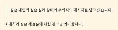 | 꿈 상황 | 해석 내용 | 길몽 or 흉몽 |