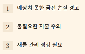 특히 외부 활동이나 대인 관계에서 금전적인 문제에 휘말릴 수 있으니 주의해야 합니다. 당신의 재물 관리를 다시 점검하고, 충동적인 소비를 자제하는 것이 필요합니다.