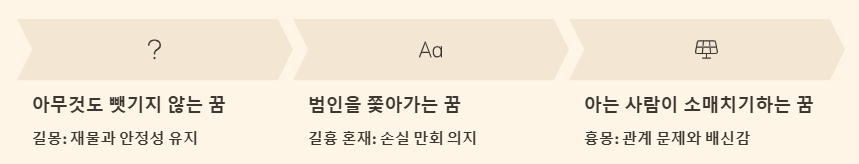 | 소매치기 당하고 아무것도 못하는 꿈 | 무력감, 심리적 압박, 현실 도피. | 흉몽 |