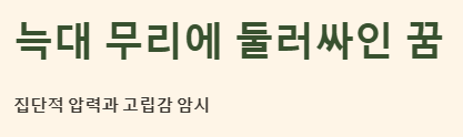 | 늑대 무리에게 둘러싸이는 꿈 | 집단 압력, 고립감, 사회적 압박 (경고). | 흉몽 |