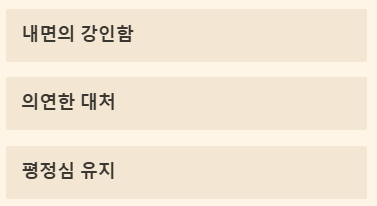 힘든 상황이 닥쳐도 당신의 강한 정신력으로 이를 극복해 나갈 수 있을 것입니다. 불필요한 감정 소모 없이 문제를 해결하고 평정심을 유지할 수 있다는 긍정적인 신호입니다.