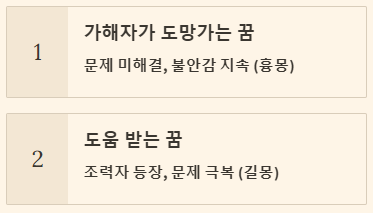 | 꿈 상황 | 해석 내용 | 길몽 또는 흉몽 |