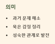 오랜 관계에서 쌓여있던 묵은 감정들이 정리되고, 과거의 문제에서 벗어나 더 자유롭고 발전적인 관계를 맺게 될 것입니다. 이는 당신의 내면이 성숙하고 있음을 보여주는 징조입니다.