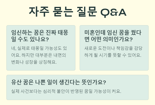 ✔ 실제 임신 가능성이나 태몽의 신호일 수도 있으니, 꿈 외 현실도 함께 살펴보는 것이 좋아요.