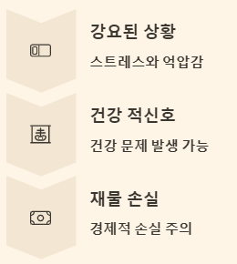 | 맛없는 음식을 억지로 먹는 꿈 | 강요된 상황, 스트레스, 재물 손실 (경고) | 흉몽 |