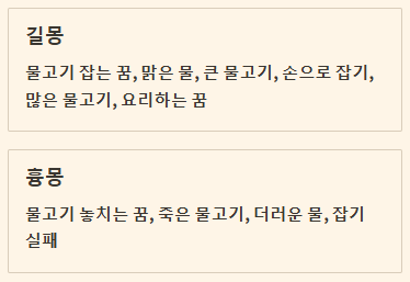 | 꿈 상황 | 해석 내용 | 길몽 또는 흉몽 |