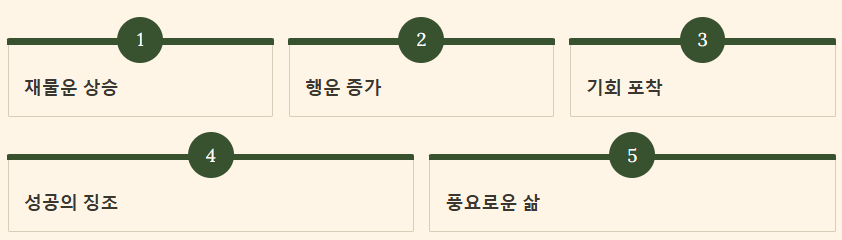 하는 일마다 순리대로 풀리고, 예상보다 훨씬 좋은 결과를 얻을 수 있습니다. 뜻밖의 횡재수가 따르거나, 오랫동안 바라던 금전적인 목표를 달성하게 될 징조예요.