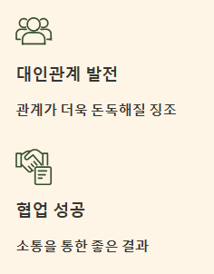 | 다른 사람과 함께 식사 | 대인관계 발전, 협업 성공 | 길몽 |