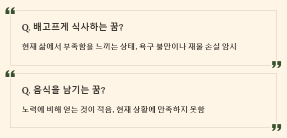 | 음식을 남기는 꿈 | 현재의 만족감 부족, 손실 | 흉몽 |