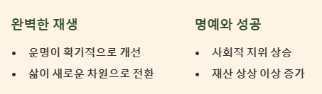 | 내가 죽고 다시 태어나는 꿈 | 완벽한 재생, 지위와 재산의 급상승 | 대길몽 |