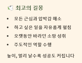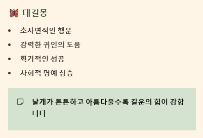 | 시원하게 날아다니는 꿈 | 모든 근심 해소, 소망 성취, 자유로운 성공 | 대길몽 |