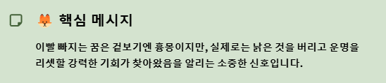 꿈은 우리 내면의 무의식적인 메시지를 담고 있어요. '이빨 빠지는 꿈'은 겉보기엔 흉몽의 탈을 썼지만, 사실은 낡은 것을 버리고 운명을 리셋할 수 있는 강력한 기회가 찾아왔음을 알리는 소중한 신호입니다. 이 꿈이 주는 긍정적인 변화의 에너지를 받아, 당신의 삶에 새로운 성공과 행복이 가득하기를 바랍니다.
