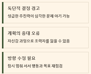 | 자신이 운전하다 사고를 내는 꿈 | 독단적 행동 경고, 목표의 중대 수정 필요 (경고) | 흉몽 |