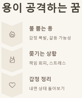 | 불 뿜는 용 | 갈등 예고, 감정 조절 필요 | 흉몽 |
