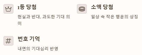 | 복권 번호가 또렷하게 기억남 | 내면의 기대심리 반영 | 중립적 |