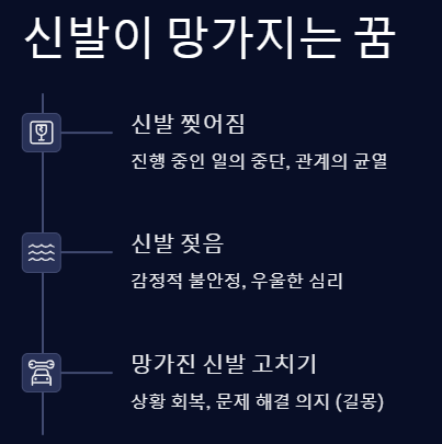 - 신발이 망가지는 꿈은 삶의 기반이 흔들릴 때 자주 등장해요.