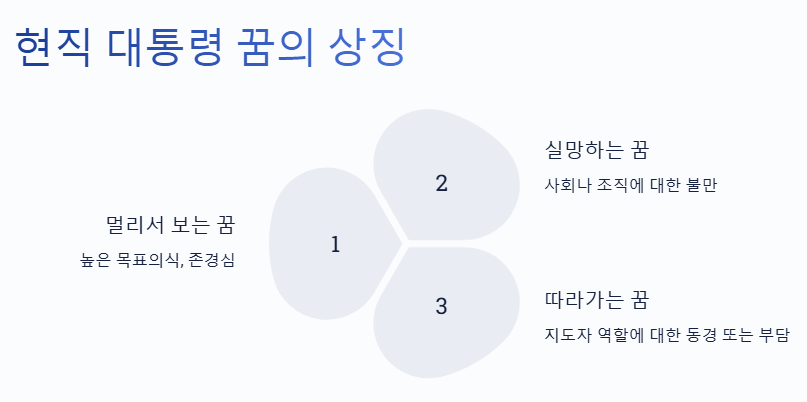 대통령과 직접 마주치는 꿈은 현실에서의 사회적 지위, 평가, 리더십 욕구를 반영해요. 특히 꿈속 감정이 중요한 해석 포인트가 됩니다.