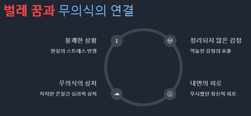 벌레가 나오는 꿈은 불쾌함 그 자체라기보다는, 내가 불쾌하게 여기는 상황, 정리되지 않은 감정, 그리고 무시했던 내면의 피로를 반영해요. 융 심리학에서도 벌레는 작지만 끈질기게 남아 있는 무의식의 상처를 나타내는 상징으로 해석되곤 해요.