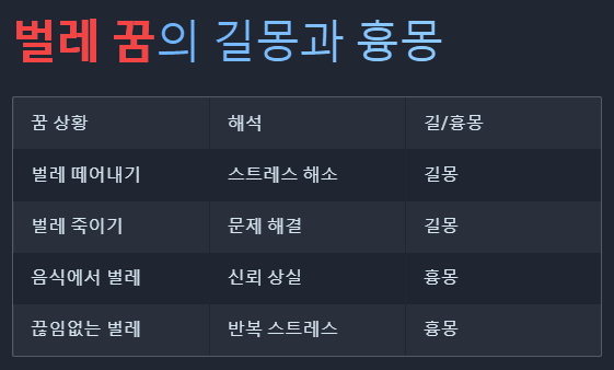 | 벌레가 끊임없이 나타나는 꿈 | 반복되는 스트레스, 피로 | 흉몽 |