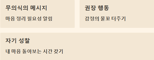 - 이 꿈들은 대부분 감정의 억압과 불안이 표면으로 드러나는 신호예요.