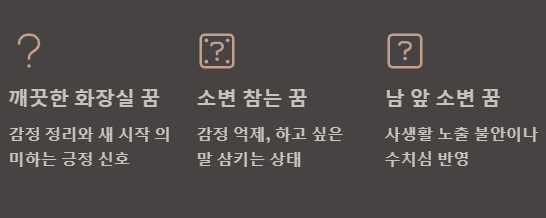 | 더러운 화장실에서 소변보는 꿈 | 억눌린 감정, 정리 필요 | 흉몽 |