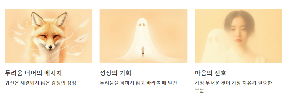 귀신은 단순한 공포의 대상이 아니라, 마음속 깊은 곳에서 해결되지 않은 감정의 상징입니다. 두려움을 피하지 않고 천천히 바라볼 때, 오히려 새로운 성장을 위한 기회를 발견할 수 있어요.