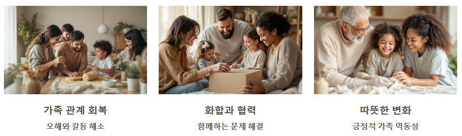 👉 가족 간의 오해나 갈등이 해소되고, 관계가 개선될 가능성을 나타냅니다. 화합과 따뜻한 변화를 기대할 수 있어요.