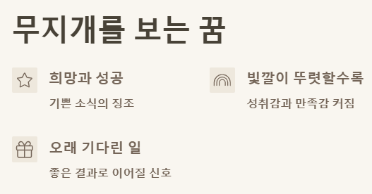 | 무지개를 보는 꿈 | 희망과 성공, 좋은 소식 | 길몽 |