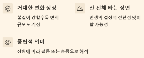 | 산불을 보는 꿈 | 거대한 변화와 전환 예고 | 중립 |